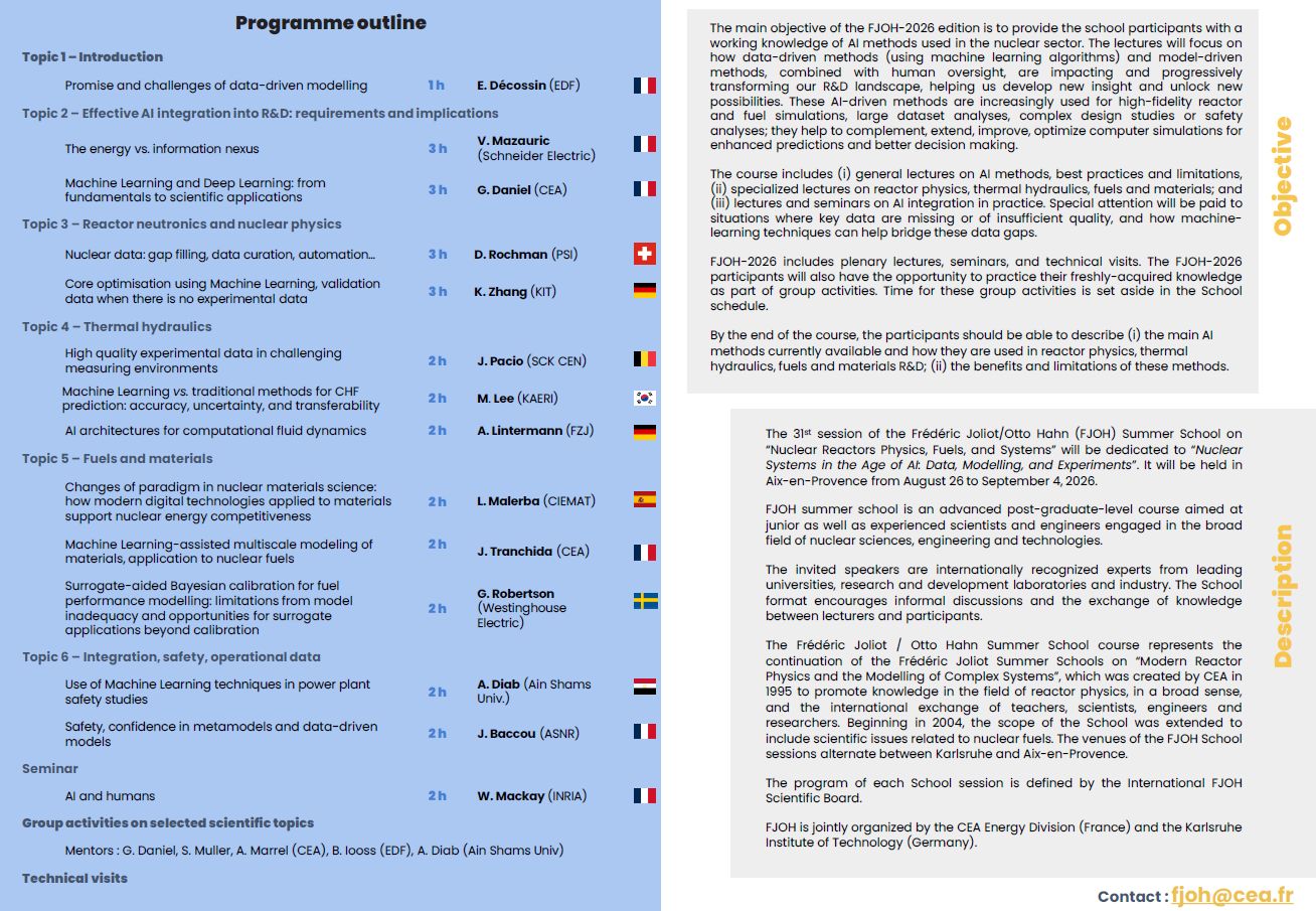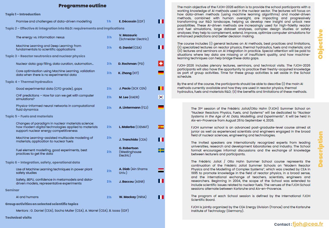 Summer School on Nuclear Reactors "Physics, Fuels and Systems"